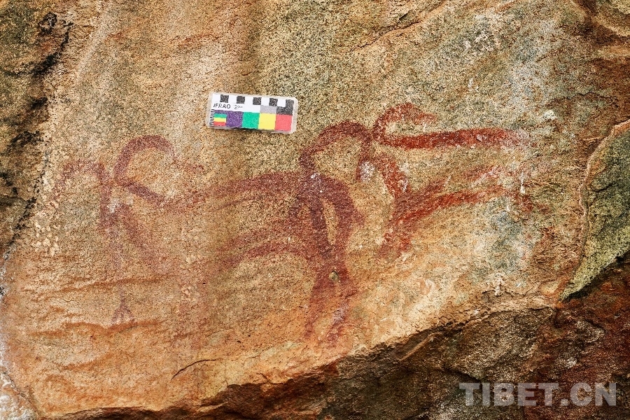 甘孜南路的涂繪類巖畫也揭示出兩個現象:一是舊石器人群在青藏高原消失的時間非常晚;二是從巖畫分布來推斷,這群人是從低海拔地區遷徙上來的,這意味著甘孜地區人類交流活動可追溯到史前的舊石器時代。