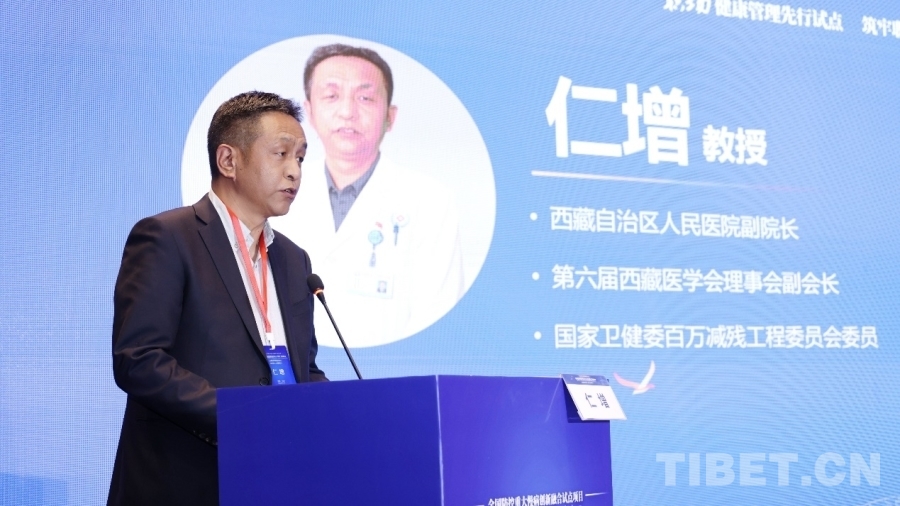 圖為西藏自治區人民醫院副院長、第六屆西藏醫學會理事會副會長、國家衛健委百萬減殘工程委員會委員仁增教授發言