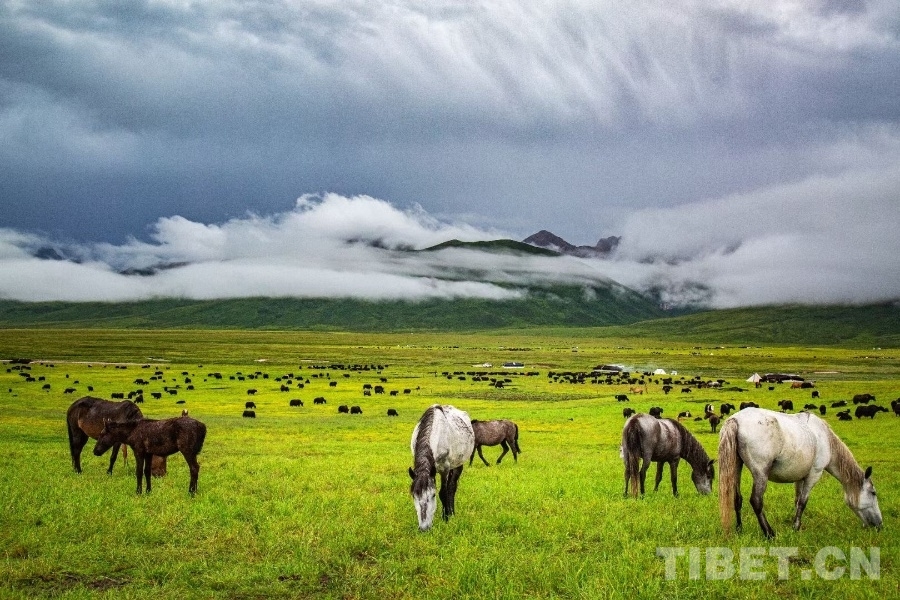 在這里,千百年來牧民們轉場放牧的古老智慧,讓草場得以休養生息;煨桑的裊裊青煙,將感恩與敬畏注入每一寸土地。在這里,阿萬倉牦牛以蹄印丈量時間,歐拉羊群如云影般掠過草原,河曲藏獒守護著草原的漫漫長夜,河曲馬踏響格薩爾王的千年傳說,它們都是舞動在高原上的精靈。