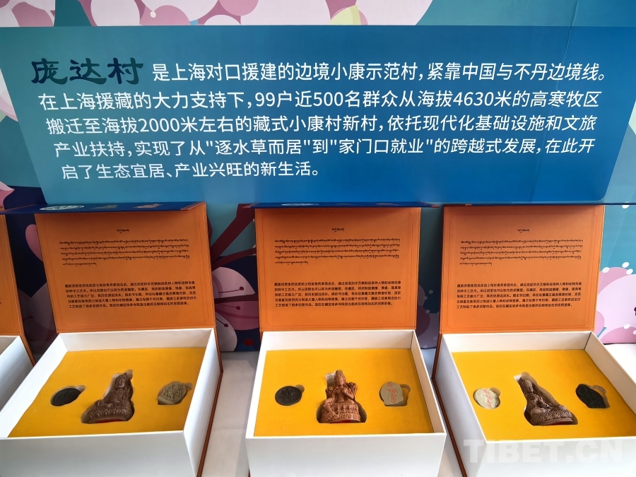 圖為5月2日至8日舉行的“三國同框 四季如畫 五彩亞東——亞東縣文化交流及特色產(chǎn)品展銷活動”上索喃次仁的作品展區(qū) 攝影:王淑