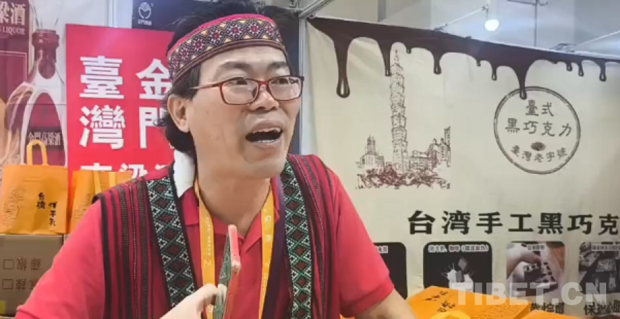圖為5月16日,第二屆拉薩進口商品展覽會上,臺灣商人“洋蔥哥”講述自己在大陸做生意的經歷 攝影:趙釗