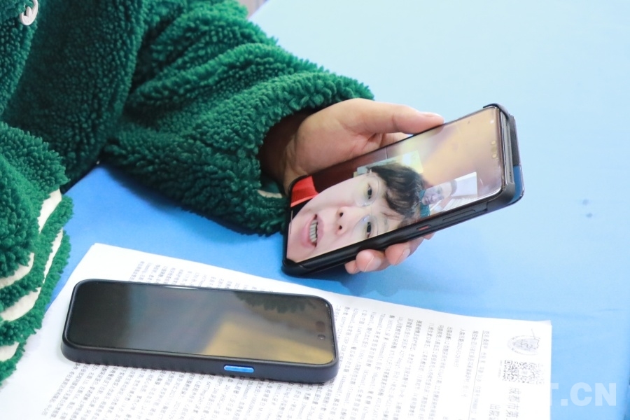 圖為患者通過(guò)尹超邦的手機(jī)連線(xiàn)北京專(zhuān)家,咨詢(xún)下一步診療方案 攝影:楊月云