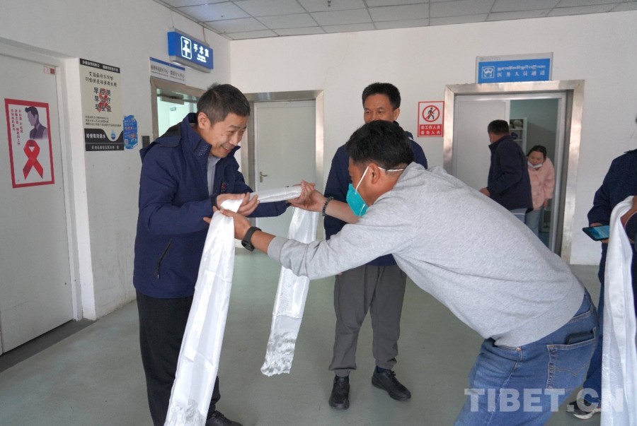圖為患者家屬正在為兩名醫生敬獻哈達