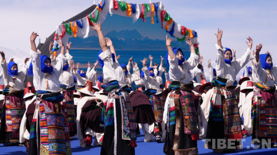 本次納木錯(cuò)開(kāi)湖日以歌舞為媒,盡情抒發(fā)對(duì)大自然的禮贊,《牧歌贊靈》《湖牧畫(huà)意》《圣湖戀曲》三章文藝表演將整個(gè)活動(dòng)推向高潮。身披牦牛氆氌的牧人身影、踏雪而歌的少女形象、象征愛(ài)情與信仰的傳說(shuō),交織成一幅幅詩(shī)意畫(huà)卷,深情演繹人與自然、信仰與愛(ài)情的動(dòng)人篇章。