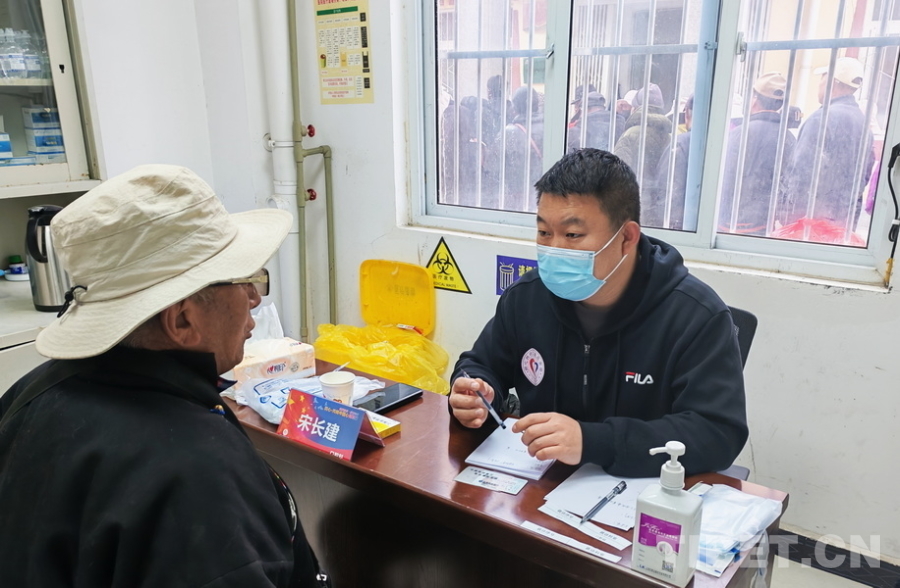 圖為火箭軍特色醫(yī)學(xué)中心口腔科醫(yī)師宋長(zhǎng)建在義診中詢問(wèn)就醫(yī)群眾病情 攝影:馬濤