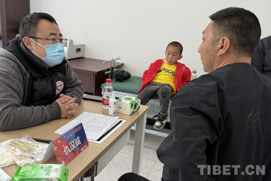 圖為在草登鄉中心衛生院義診點分診臺的候診群眾 攝影:喇應強