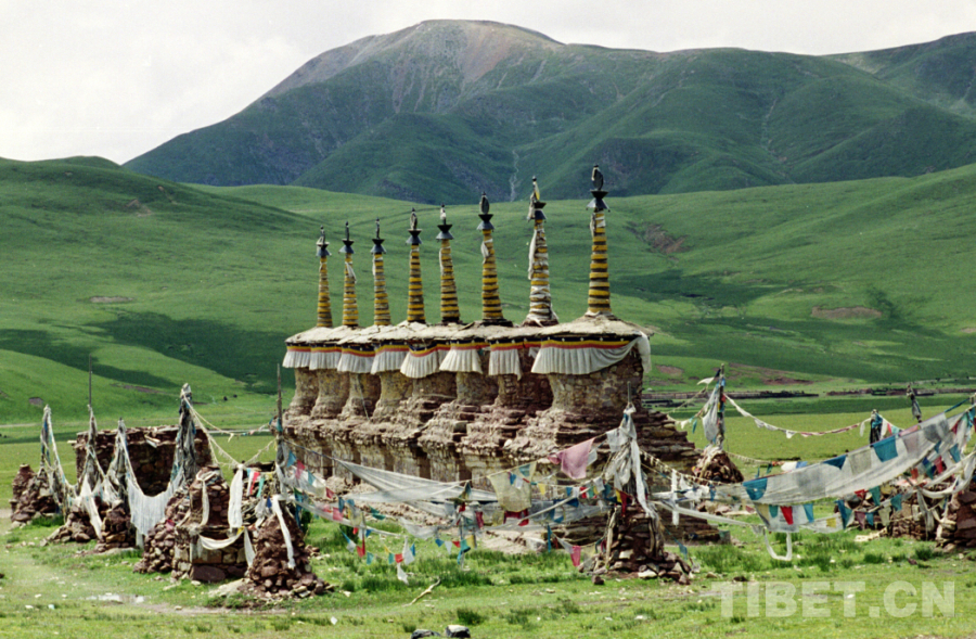 圖為當雄至那曲不遠處,公路邊所立的八座白塔(唐召明1998年攝)