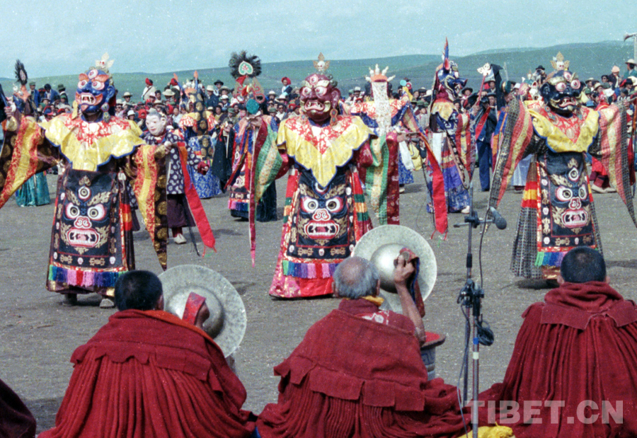 圖為那曲鎮(zhèn)賽馬會上的神舞表演(唐召明1987年攝)