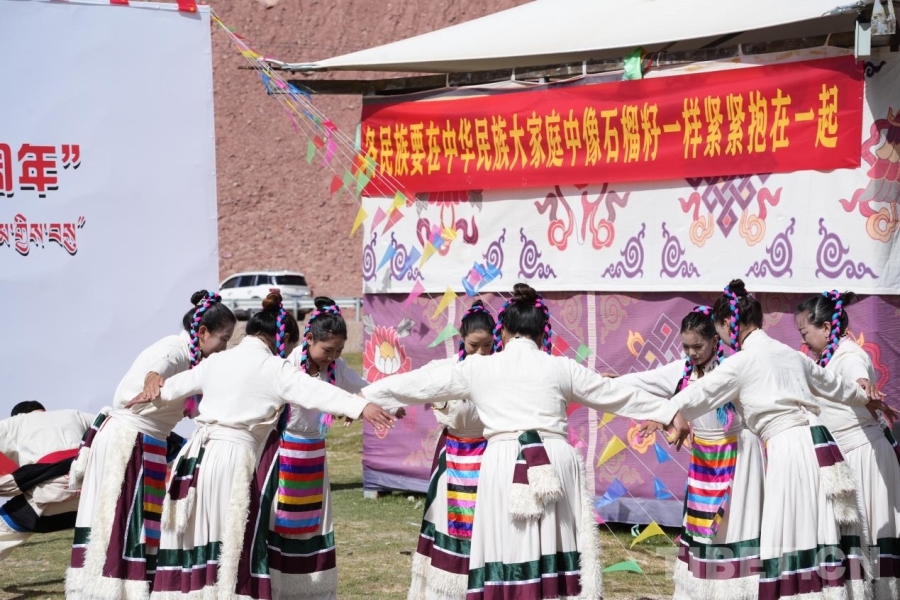 活動現場洋溢著歡樂祥和的節日氛圍,新疆舞與鍋莊舞輪番上演,民俗服飾走秀令人耳目一新。話家常、看表演、品美食,來自藏族、漢族、維吾爾族、哈薩克族等民族的干部群眾圍坐一起,共慶佳節。