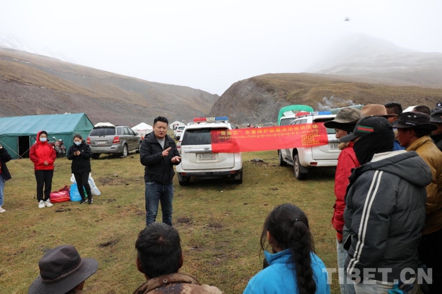 圖為2022年6月14日,昌都市“雪蓮花”女童保護(hù)聯(lián)盟深入丁青縣蟲草采挖點(diǎn)開展法治巡講活動