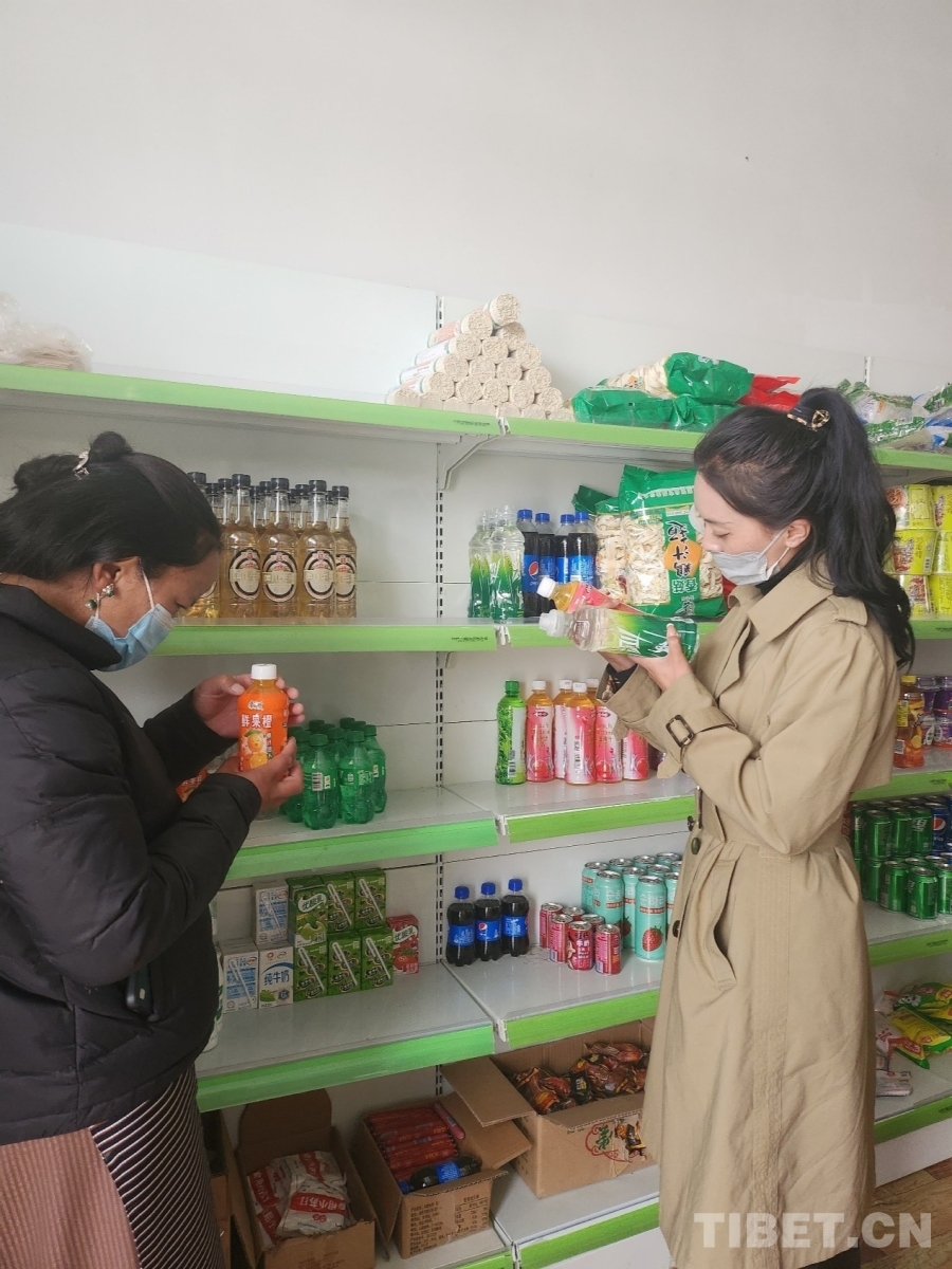 圖為次仁嘎措在村小賣(mài)部檢查食品保質(zhì)期 受訪者供圖