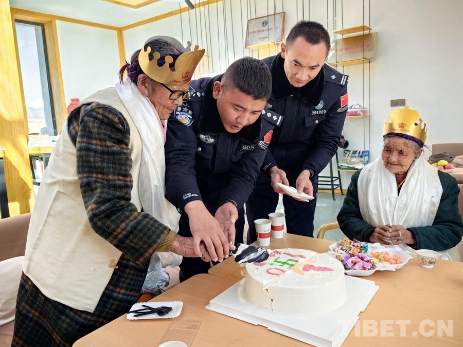 圖為2025年3月5日,日喀則亞東帕里鎮四社區駐村工作隊與帕里邊境派出所民警給當地老人送溫暖