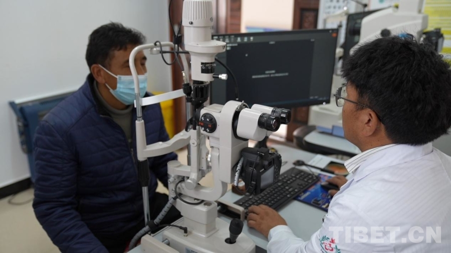 圖為崗巴縣中心醫院眼科醫生正為患者做檢查