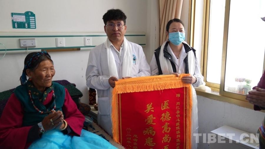 中國西藏網訊 近日,西藏日喀則市崗巴縣中心醫院眼科收到了定結縣央珍的錦旗。因長期被視力模糊問題困擾,央珍慕名來到崗巴縣中心醫院眼科治療。“是一位親戚推薦我來的,她之前在這里做的眼科手術效果非常好。”如今視力基本恢復正常的央珍感激地說道。