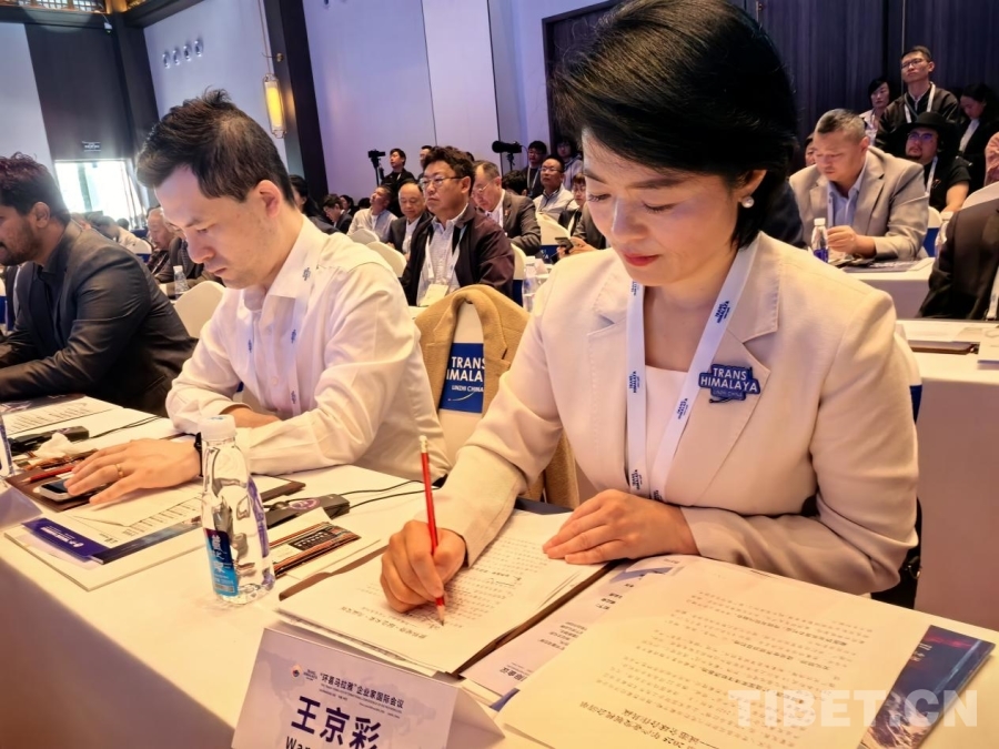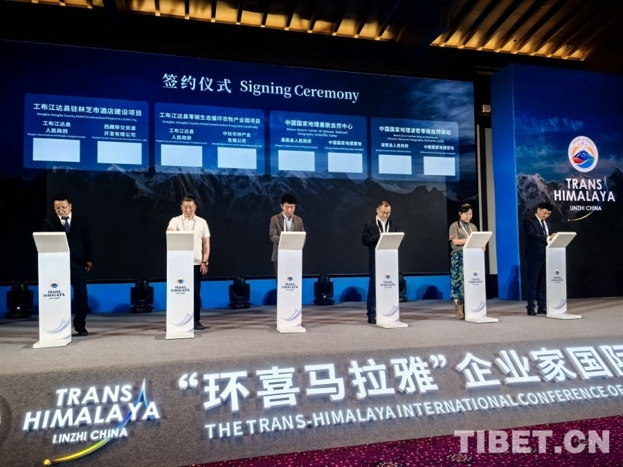 6月27日,“環喜馬拉雅”企業家國際會議在西藏林芝舉行。圖為現場簽約儀式 攝影:王淑