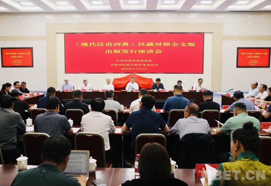 中國西藏網訊 7月11日,《現代漢語詞典》漢藏對照全文版(以下簡稱《詞典》)出版發行座談會在西寧召開。青海省政協黨組書記、主席公保扎西致辭,省委常委、統戰部部長班果講話,全國人大民委原副主任委員丹珠昂奔以視頻形式發言,省人大常委會副主任楊逢春出席。