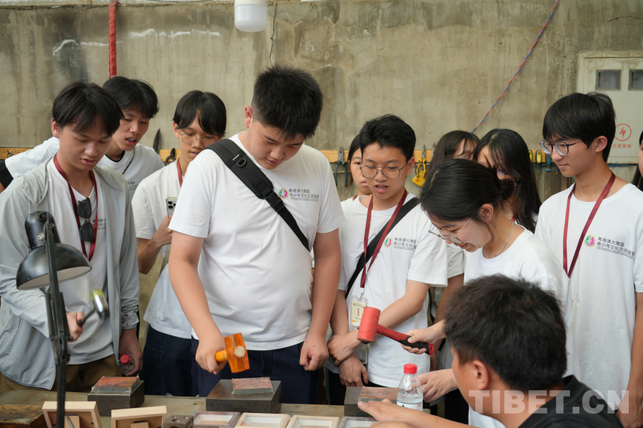 中國西藏網訊 7月17日,2025澳門青少年青海研學團的同學們走進位于青海省西寧市湟中區魯沙爾鎮的陽坡銀銅器加工產業園,在一錘一鏨中感受傳統技藝的魅力。