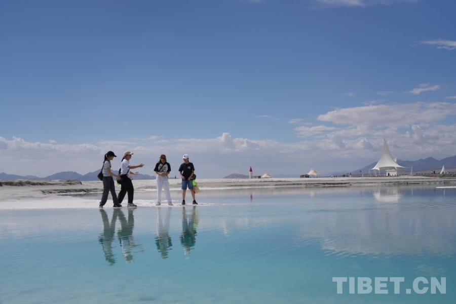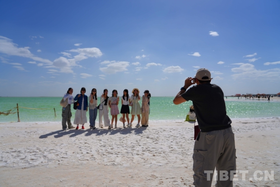 在海西蒙古族藏族自治州格爾木市,海拔2670米的察爾汗鹽湖,翠綠之美令人震撼,風(fēng)起波動(dòng),湖面如碎鉆鋪就的星河;天然形成的鹽花形態(tài)各異宛如珊瑚叢生,在陽光下,閃耀著璀璨的光芒;浮在鹵水上的“萬丈鹽橋”延伸至天際,橫跨湖面,還有周邊的現(xiàn)代化采鹽船,輸鹵管道,車來車往,工業(yè)設(shè)施與自然景觀形成強(qiáng)烈對(duì)比。來自妙法寺劉金龍中學(xué)三位女生欣賞著美景,也紛紛討論這次令人驚嘆的“自然課堂”。鐘澄情同學(xué)不自禁感慨:“這里跟網(wǎng)上宣傳的一樣美!就像是上帝打翻的蘋果汁。”曾婉晴同學(xué)驚嘆道:“曾經(jīng)我只聽說過茶卡鹽湖,來到這里才知道察爾汗鹽湖是中國最大、世界第二大的鹽湖,面積相當(dāng)于56個(gè)茶卡鹽湖,鹽儲(chǔ)量可以讓全球80億人吃上兩千年。”而許馨月同學(xué)更加震撼這里工業(yè)與自然相互交融的獨(dú)特魅力,直呼這是一座真正的“寶庫”!