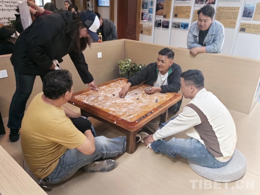 圖為居民在家史館內(nèi)玩藏式克朗球 八一社區(qū)供圖