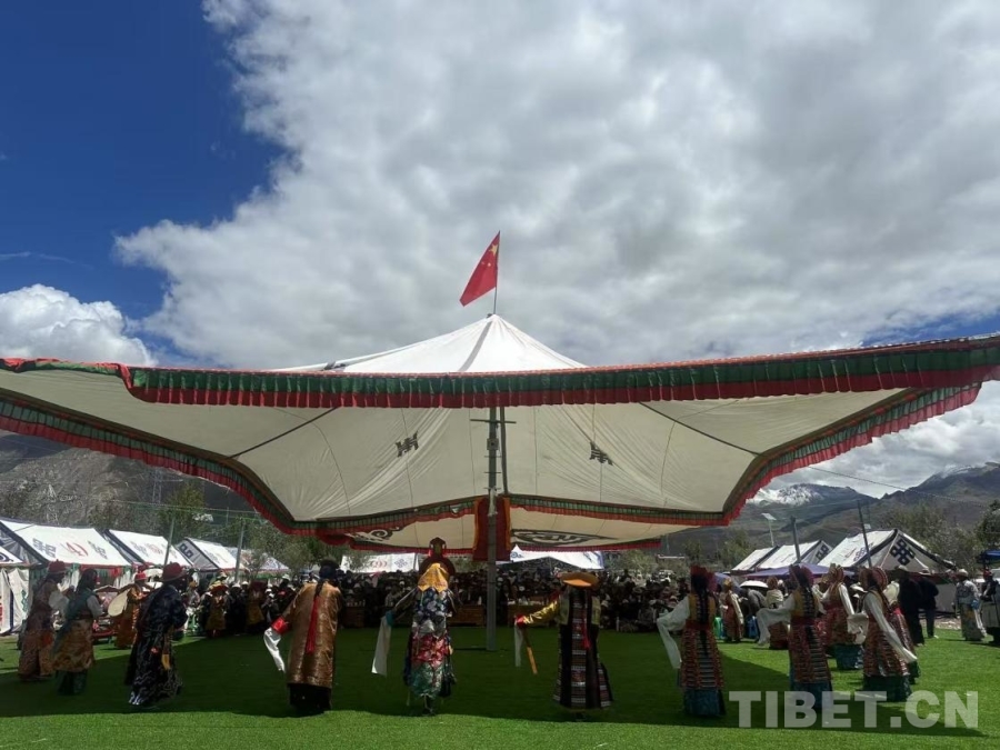 中國西藏網(wǎng)訊 鼓鈸聲穿透晨霧,藍(lán)面具在河畔的陽光下流轉(zhuǎn)著金屬般的光澤。7月16日,日喀則市南木林縣非遺林公園內(nèi),一場跨越七百年的湘巴藏戲展演正酣。臺上,11支藏戲隊輪番演繹《智美更登》《諾桑法王》等藏戲經(jīng)典劇目,古老唱腔與現(xiàn)代舞美交相輝映;臺下,千余名群眾凝神駐足,酥油茶的醇厚香氣伴著此起彼伏的喝彩裊裊升騰——這是南木林獻(xiàn)給西藏自治區(qū)成立60周年的非遺厚禮,更是“藏戲之鄉(xiāng)”文化基因的鮮活注腳。