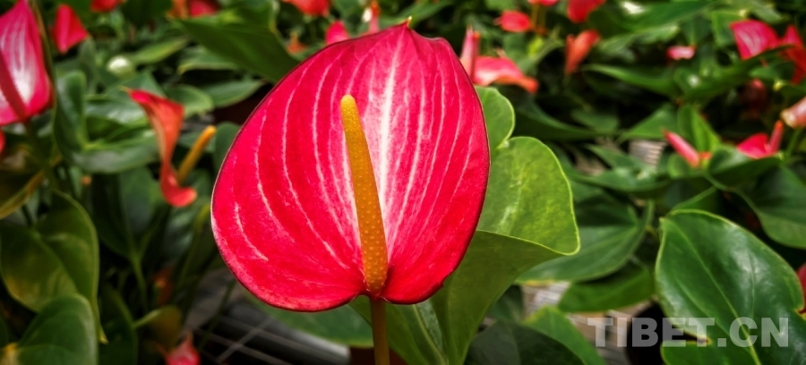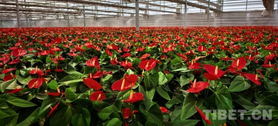 圖為才納園區溫室里一眼望不到邊的紅掌花卉 攝影:劉莉