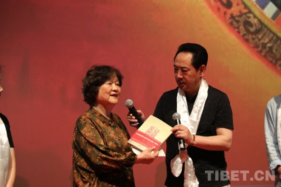 中國藏學出版社原總編輯、作家馬麗華表示,自己還沉浸在電影的情節里,“我覺得這部電影太好了,讓人非常感動。革命建設事業要薪火相傳,希望大家都能來重溫這段歷史。”她特意帶來西藏自治區成立四十周年時,由西藏自治區政府歷任主席共同撰寫的《見證西藏》一書,其中就有天寶所寫的《西藏十二載 一生不了情》。他在文中深情地說:“我的一切都是黨給的,就連我天寶這個名字,也是毛主席給我起的”。