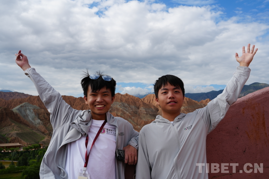 圖為范頌言(左)和朋友在貴德國家地質公園 攝影:鄒慧