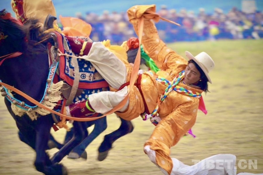 圖為騎手表演拾哈達