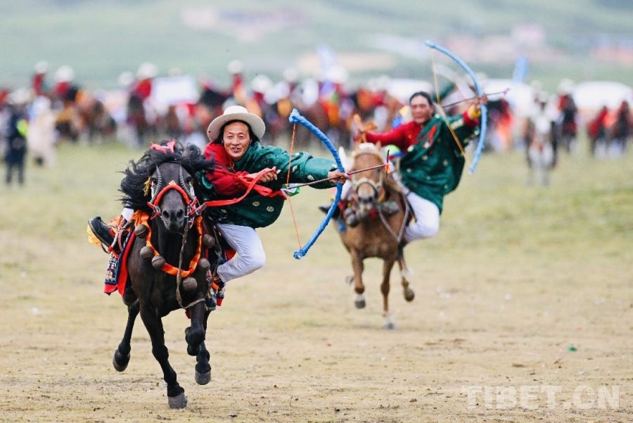 當天下午,速度與激情仍在八一賽馬場不斷上演。三項10000米速度耐力賽迎來最終角逐。大馬組如離弦之箭,破空而出;中馬組疾行如風,勢不可擋;小馬組氣勢如虹,奮蹄爭先。每一次驚心動魄的彎道超越,都讓觀眾席爆發(fā)出海嘯般的助威,廣袤的草原仿佛瞬間幻化成一片沸騰的競技海洋。與此同時,騎射邀請賽也在多旺塘精彩上演。馬蹄翻飛間,騎手張弓搭箭,弓弦響處,箭矢流星般釘入靶垛。“這不僅比射術(shù),更比人馬合一的默契。”一位身著傳統(tǒng)服飾的本地牧民向身旁的游客解釋,眼中流露出無法掩飾的自豪。