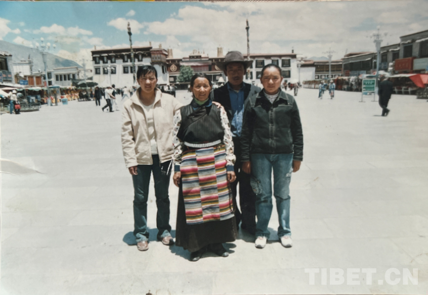 這是2005年我和丈夫、大女兒、小女兒在拉薩大昭寺前照的。那時(shí)是去給小女兒看病,當(dāng)時(shí)我五十歲。