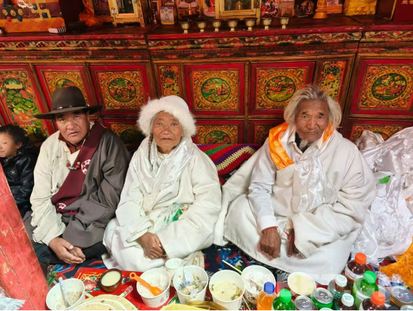 我們家孩子多,年齡都只差一兩歲。媽媽常常懷里抱著才幾個(gè)月大的弟弟,背上還背著剛滿一歲的另一個(gè),就這樣去公社勞動(dòng)。那時(shí)我七歲,老二六歲,日子過(guò)得特別苦。我們只有一頂又小又舊的黑帳篷,白天我們就待在帳篷里等。父母放羊回來(lái),有時(shí)我們?cè)缫言诘厣纤恕3缘臇|西也很簡(jiǎn)單,只有糌粑,喝的也只是用羊奶做成的奶渣水。現(xiàn)在孩子們稍微冷一點(diǎn)就會(huì)抱怨衣服不夠暖,可那時(shí)候,我們連像樣的衣服都穿不上。雖然家里人多,但真正能勞動(dòng)的少,孩子又都還小。公社按工分分配,我們家不僅掙不夠,還常常欠下不少。一想到父母當(dāng)年受的那些苦,我心里就特別不是滋味。如今只要吃到好吃的,我第一個(gè)想到的就是父母;見(jiàn)到好穿的,第一個(gè)念頭也是他們,總想讓他們也嘗一嘗、穿一穿。