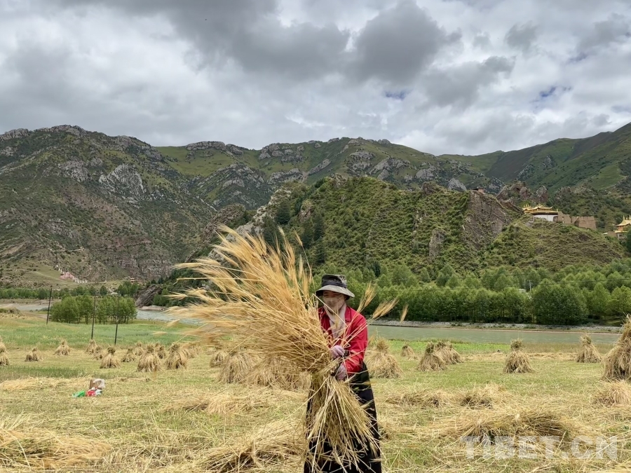 金穗低頭,豐收在望。孜榮村人們用勤勞的雙手繼續書寫著“高原糧倉”的豐收故事。(中國西藏網 記者/畢然 龍真多吉)