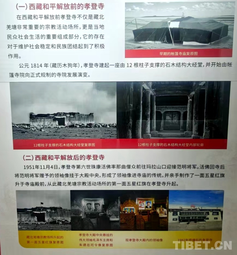 走進孝登寺,主殿正中央懸掛的領袖像莊嚴醒目。據孝登寺管委會副書記、主任羅布旺秋介紹,1951年,范明將軍率解放軍途經那曲時,六世珠康活佛力排眾議前往馬拉山迎接。范明將軍向僧眾宣講黨的民族宗教政策,并向六世珠康活佛贈送了毛主席和朱總司令畫像。此后,六世珠康活佛將領袖像敬懸于大殿正中,這一傳統延續至今。他還親手制作并升起了藏北寺廟中的第一面五星紅旗。