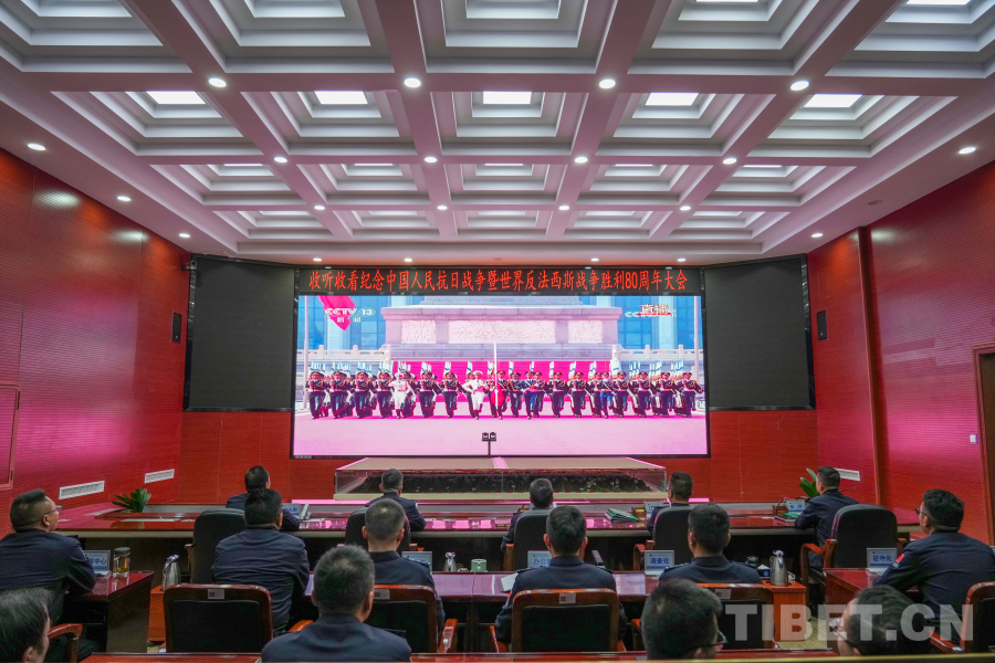 圖為日喀則邊境管理支隊康布邊境派出所組織全體民警觀看紀念中國人民抗日戰(zhàn)爭暨世界反法西斯戰(zhàn)爭勝利80周年大會 攝影:周偉