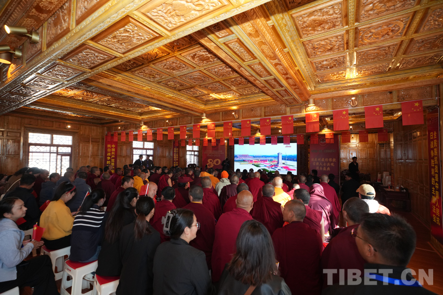 中國西藏網訊 9月3日上午,紀念中國人民抗日戰爭暨世界反法西斯戰爭勝利80周年大會在北京天安門廣場隆重舉行,以盛大閱兵儀式,同世界人民一道紀念這個偉大的日子,共同開創更加光明的未來。同一時刻,在云南省迪慶藏族自治州香格里拉市松贊林寺,130余名我國宗教界人士觀看大會直播,共同見證這一歷史性時刻,感受新時代中國國防力量,激蕩愛國愛教情懷。