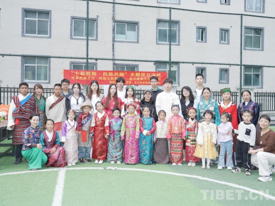 7月26日,亞東縣活動(dòng)中心足球場(chǎng)熱鬧非凡。這是西部夢(mèng)想實(shí)踐團(tuán)聯(lián)合亞東縣群團(tuán)工作部舉辦的“七彩假期·民族共融”活動(dòng)。20余組親子家庭身著藏裝,在支教團(tuán)老師與亞東縣群團(tuán)工作人員引導(dǎo)下,共赴一場(chǎng)溫情文化之旅。