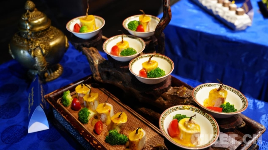 彭岜熱餐廳別出心裁地打造了傳統藏式廚房展區,灶臺上銅鍋咕嘟作響,散發著誘人香氣,各式藏餐擺盤精美,令人大開眼界。據餐廳文化研究員格桑介紹:“藏餐文化特別注重健康理念,以煮、蒸為主的烹飪方式最大程度保留了食材的營養。我們的食材全部來自高原牧場,天然無添加。”