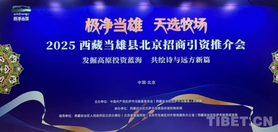 中國西藏網訊 9月8日,2025西藏當雄縣北京招商引資推介會在北京西藏大廈舉辦。推介會以“極凈當雄·天選牧場——發掘高原投資藍海,共繪詩與遠方新篇”為主題,由中共當雄縣委員會、當雄縣人民政府主辦,北京援藏指揮部、東城區相關部門聯合指導,吸引了來自北京及周邊等地的80余家企業代表參會。