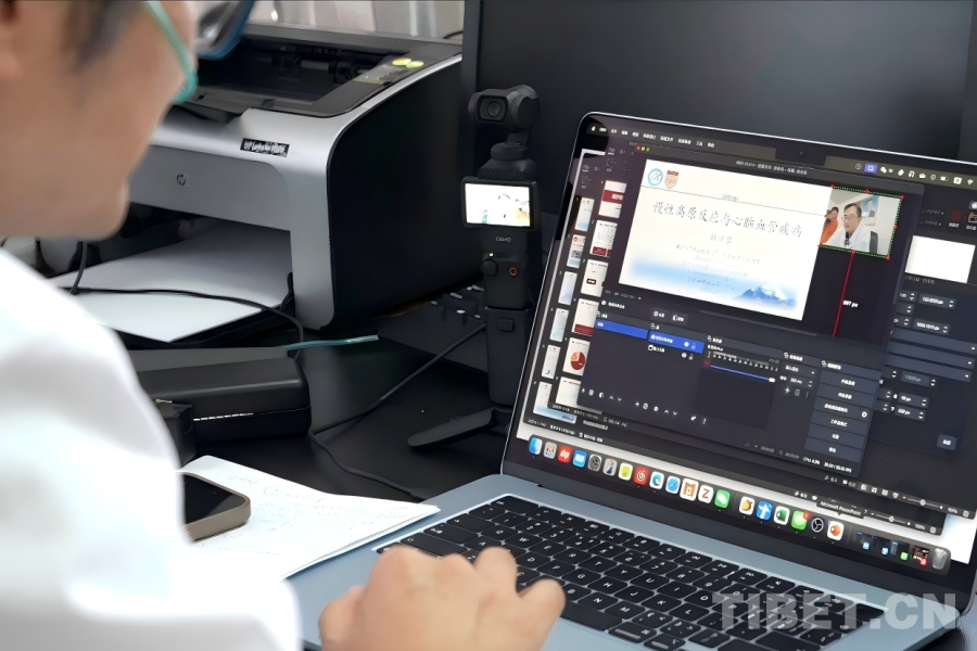 在阿里地區人民醫院的行政樓辦公室內,來自上海華山醫院神經外科、作為第25批“博士服務團”成員援藏的主治醫師杜倬嬰,正專注研究一項“新技術”。桌面上,一臺口袋相機運行著,旁邊電腦屏幕上同步顯示相機所拍攝的畫面,同時呈現的還有一份關于高原反應與心腦血管疾病的課程講義?!斑@是一套直播系統,不過我現在還在學習怎么使用?!爆F任阿里地區人民醫院黨委委員、副院長的杜倬嬰笑著展示初見雛形的成果。
