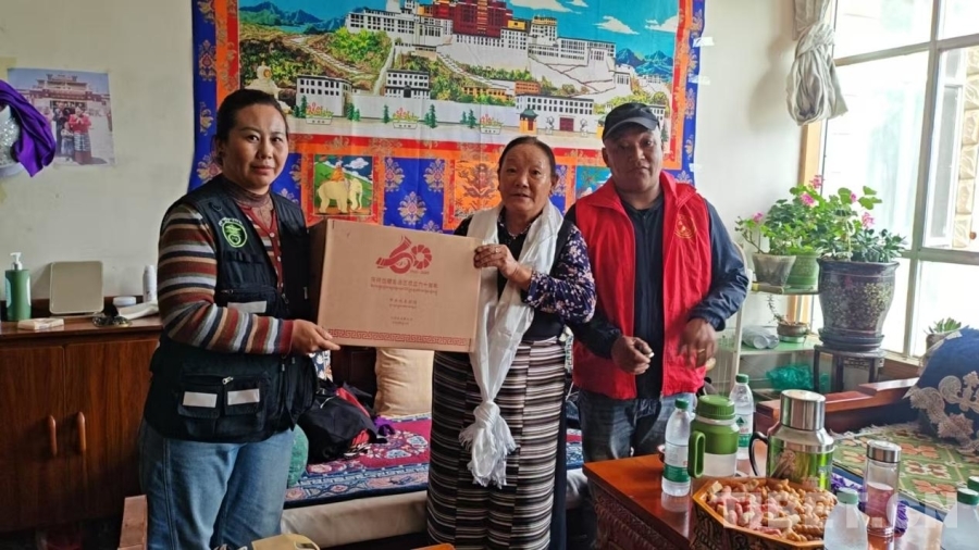 圖為八一街道吉曲雄社區(qū)居民收到中央代表團贈送的禮物 八一街道黨建辦供圖