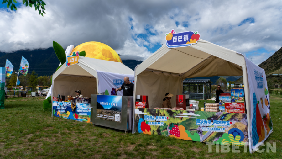 活動當天上午,水果狂歡市集熱鬧開市。來自西藏林芝市巴宜區七個鄉鎮的特色農特產品齊聚一堂,林芝蘋果、米瑞黃桃等新鮮水果香氣四溢,搭配藏香豬、靈芝、松茸、枸杞原漿等高原真品琳瑯滿目,共同勾勒出一幅“舌尖上的林芝”豐收畫卷。現場還設置仿真果樹、水果龍門、月亮氣模等沉浸式打卡場景,贏得游客流連駐足,紛紛在社交媒體平臺分享這份“高原甜蜜”。