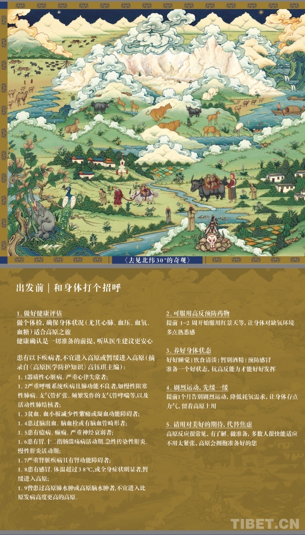 這場來自雪域高原的特別展覽,是一本《進(jìn)藏健康科普指南》的濃縮。該指南以“守護(hù)生命”為主題,由西藏企業(yè)奇正藏藥發(fā)起,西藏非物質(zhì)文化遺產(chǎn)勉唐畫派代表性傳承人曲水·旦增精心創(chuàng)作的,是首份集西藏非遺唐卡藝術(shù)與進(jìn)藏健康科普實(shí)用功能為一體的手冊,正在線上線下免費(fèi)長期發(fā)放中。