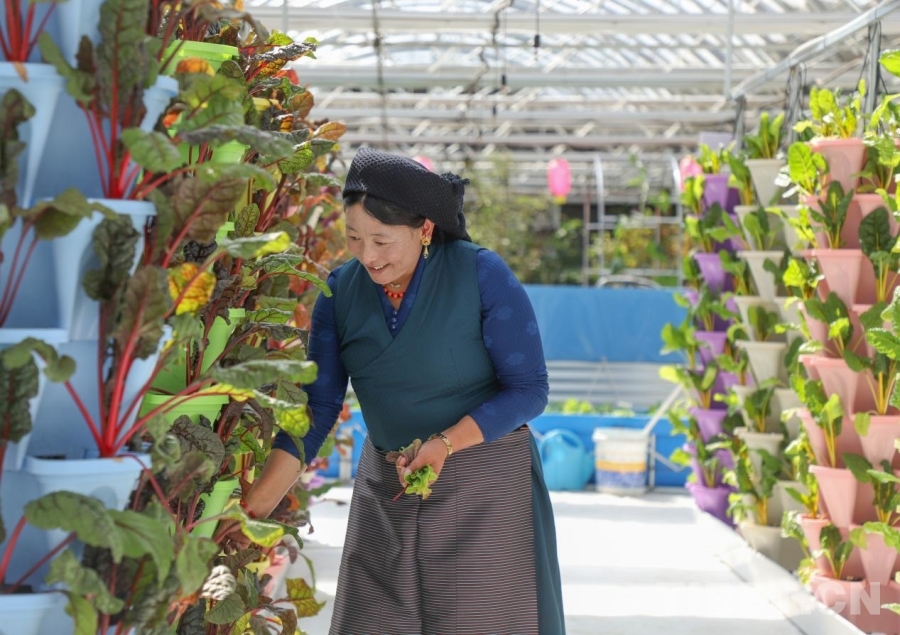 “這里工作穩(wěn)定,每月能掙4200元,還能學(xué)到先進(jìn)的種植技術(shù)。”正在大棚忙碌的塔巴村村民尼瑪笑著說。