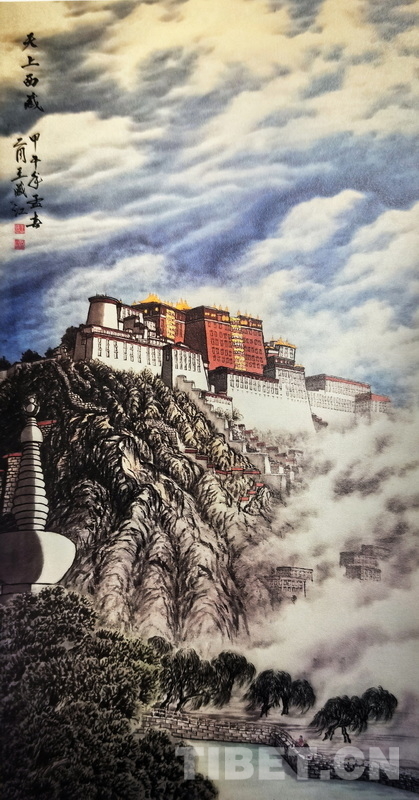 圖為王藏江國畫作品《天上西藏》180厘米?97厘米