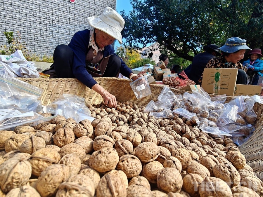 現(xiàn)場,成熟的核桃堆積如山,村民們分工有序,有的負(fù)責(zé)精確稱重,有的專注仔細(xì)打包,處處是繁忙而喜悅的豐收景象。這些產(chǎn)自高原千年核桃林的優(yōu)質(zhì)特產(chǎn),正借助現(xiàn)代物流網(wǎng)絡(luò),走出雪域深山,直達(dá)消費者手中。如今,千年核桃林的核桃不僅成為了當(dāng)?shù)匾粡堥W亮的名片,更通過線上銷售切實帶動了農(nóng)戶增收,為鄉(xiāng)村振興注入了新的活力。(中國西藏網(wǎng) 記者/次旦拉姆)
