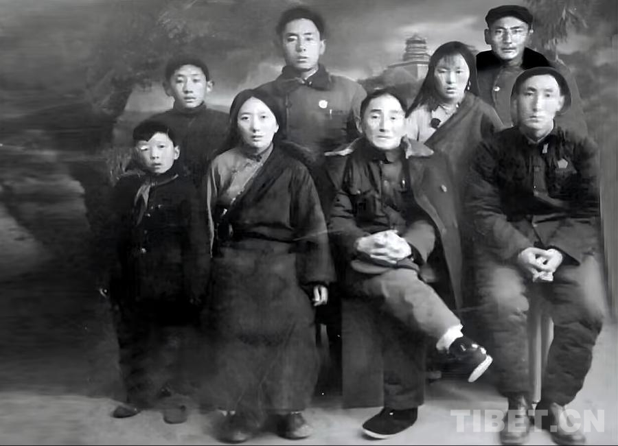 圖為米福堂全家福(1962年),前排左三為米福堂,左二為夫人布莎西拉措(布莎瓊萊之妹,為布莎瓊萊去世后續娶),左四為長子旺斗昂布,后排左一為五子土登嘉措,左二為次子米扎西,左三為長女德慶,左四為三子久甫。