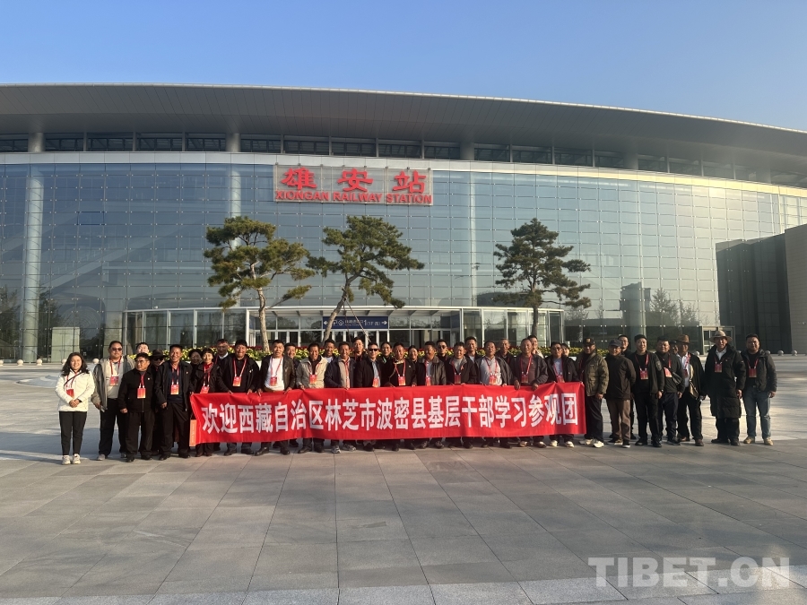 圖為西藏自治區林芝市波密縣基層干部學習參觀團在高鐵雄安站前合影 攝影:李文治