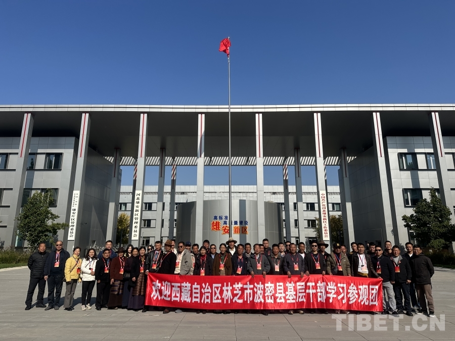 圖為西藏自治區林芝市波密縣基層干部學習參觀團在雄安新區規劃展示中心合影 攝影:李文治