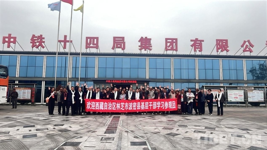 圖為西藏基層干部學習參觀團與中鐵十四局相關人員合影 攝影:王茜