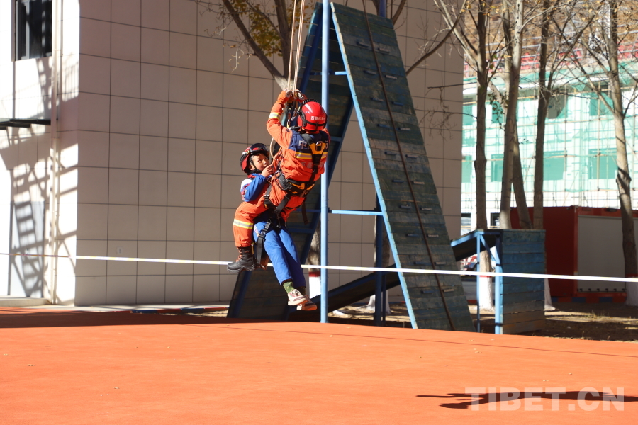 繩索實戰救援技術觀摩環節,在訓練場上,消防員們身手矯健,演示了繩索上升、下降、橫渡、傷員轉運等一系列高難度救援技巧。他們精準的操作、默契的配合以及在高空繩索上展現出的沉著與勇敢,引來了師生們的陣陣驚呼和熱烈掌聲。